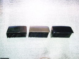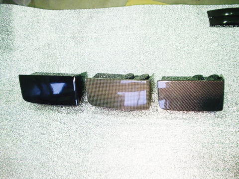 左からカーボン(綾織)製、中 カーボンケプラー、右側 黒ゲルコート製 |