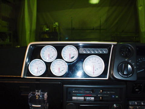 取付け例 デフィ 60φ水温、油温、油圧、排気温、114φタコメータ、インジケータランプ、コントロールユニットUは純正メータ脇に取り付け |