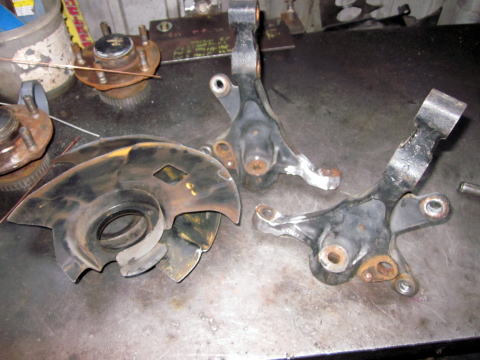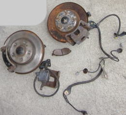 用意するパーツ S13・C33・A31ナックル、ハブ、ブレーキ1式、S13車高調、S14/15(M14-P1.5)タイロッドエンド ※画像はS15用ですが4穴のS13系ナックルを使用します。 |