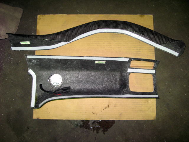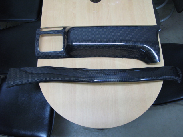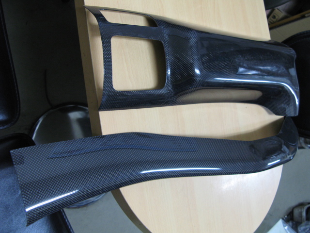 | ドライバー側からパッセンジャー側まで制作することで一体感がある物としました。 純正内装パネルに合わせたカーボン平織りを採用しています。 クリヤー塗装済みです。 |