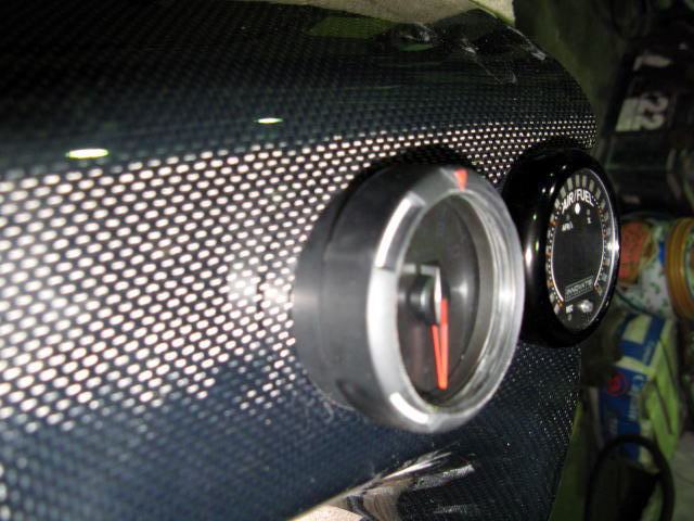 追加メーター取り付けの注意事項 純正のダッシュボードの形状で右側にメーターを取り付けをするとダッシュボードと干渉します。 画像上はデフィφ60はメーター後部25oのクリアランスが必要で、画像の取り付け位置だとダッシュボードとの干渉はしません。 画像下左デフィレーサーゲージφ52は後部35o必要で画像取り付け位置より左に5ミリほどもう少し寄せないとダッシュボードと干渉します。 画像ではスペーサーでかさ上げしています。 メーター抜け止めにホースバンドなど使うと楽です。 右側のメーターはイノベート空燃比計ディスプレイXD-16で後部の厚みはほぼ無くてメーターフードに両面テープで固定しています。 |